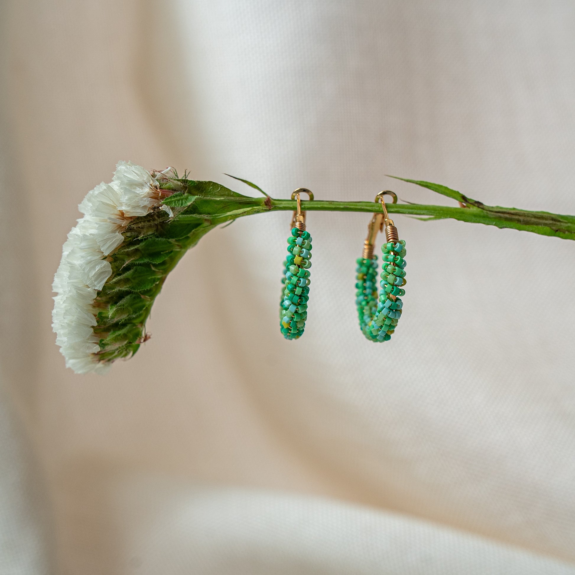 Orecchini pendenti composti da piccole perline colorate. Le perline sono infilate su fili sottili. Stile boho chic. Vivaci e colorati, adatti per l'estate.